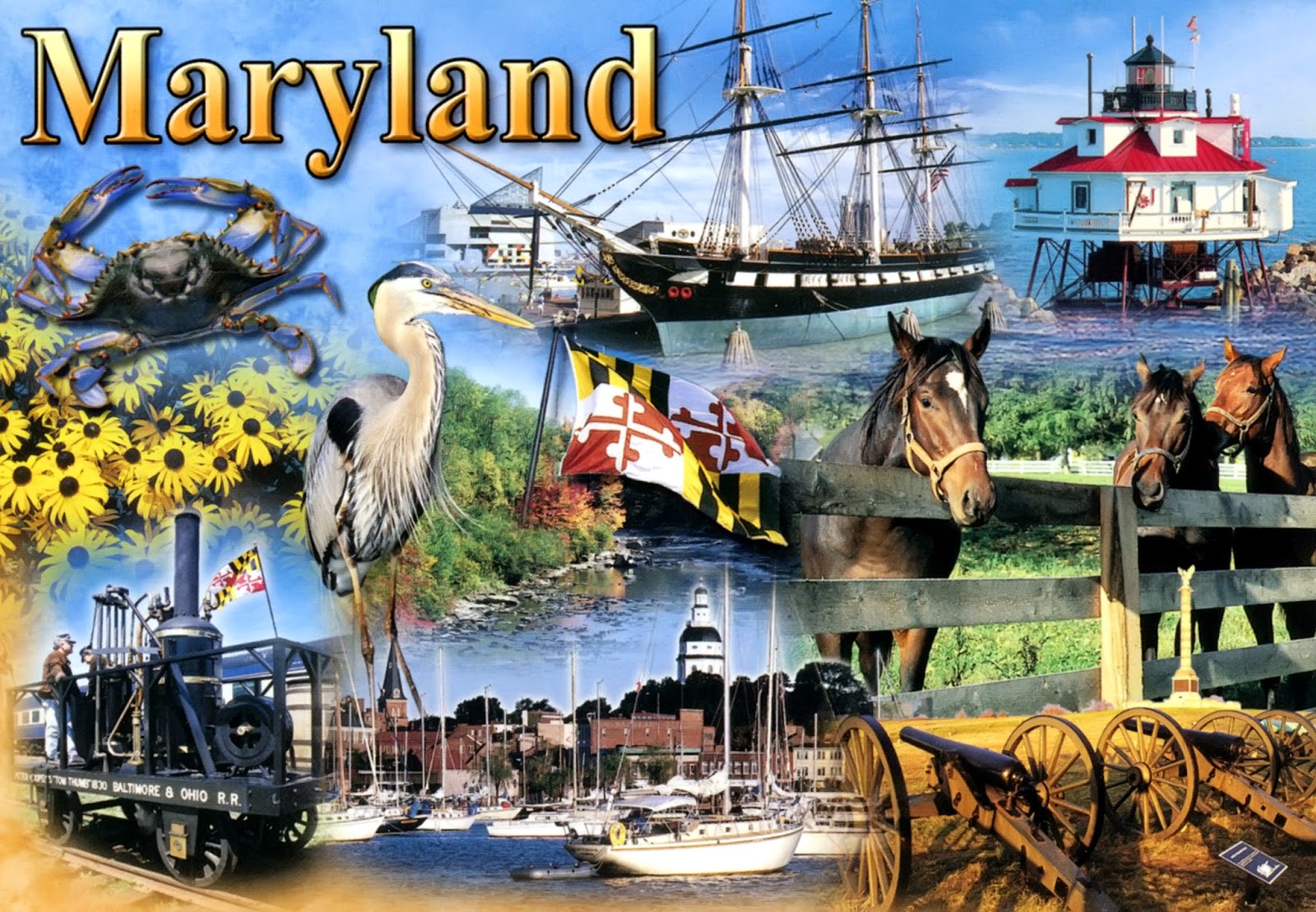 Вторая открыточка от Джинни из США)) На ней представлено всё, чем знаменит штат Мэрилэнд. Выглядит вдохновляюще!)))))